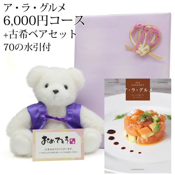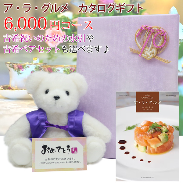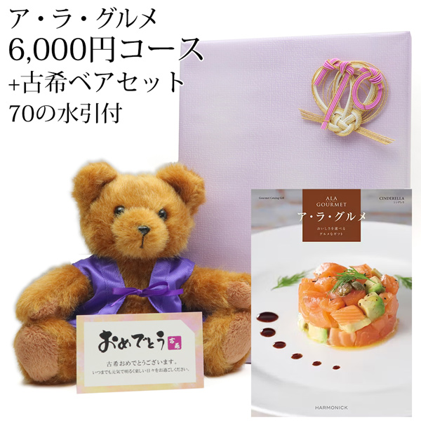 | サイズ | ■ハーモニック ギフトカタログ アラグルメ『シンデレラ』6,000円コース:ページ数:210ページ、掲載点数:約340点、専用化粧箱に入れてお届けします。 ■古希ベア:高さ約19cm・幅約18cm ※ひとつひとつ手作りのため、サイズが若干異なる場合があります。 | |