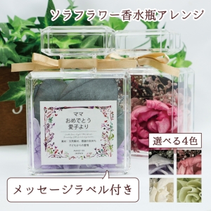 | 商品名 | ソラフラワー 香水瓶型ボトルアレンジ <メッセージラベル付き 全4色> | |