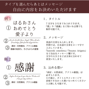 7文字を3行までお入れできます。『愛』や『感謝』など短いお言葉でも制作可能です。