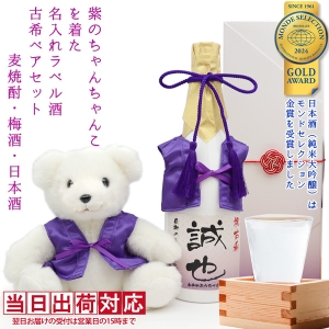 | 商品名 | 紫のちゃんちゃんこを着た名入れラベル酒<古希ベアセット> | |